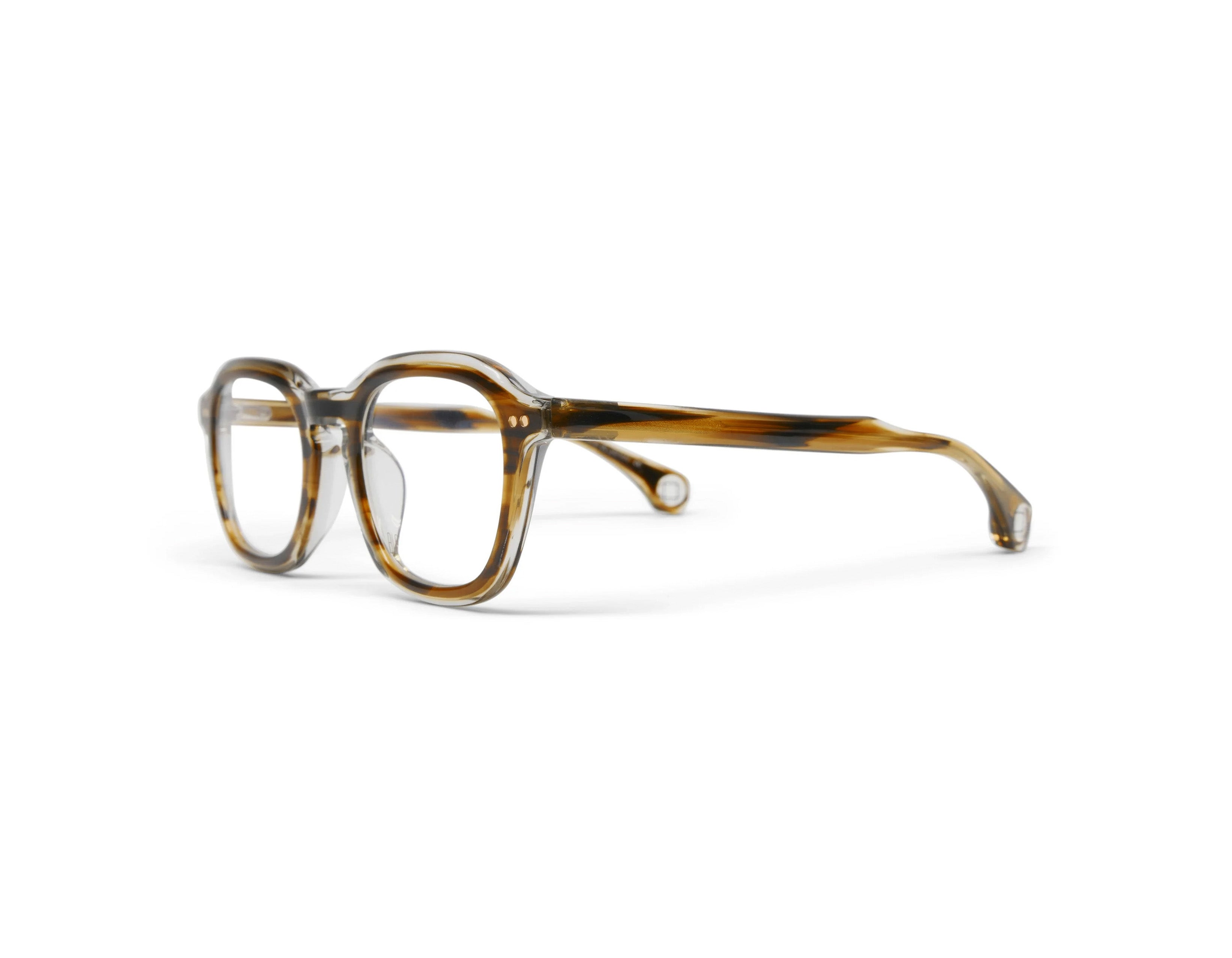 日本工匠手工製作的 Blake Kuwahara 眼鏡經過相當費時的 Lamination 熱壓技術重塑板材鏡框的層次與樣貌,獨創特有的「框中框」結構,以通透鮮明的外框包覆內框,跳脫傳統思維,藉由特殊花色與紋理質感的反差塑造出充滿設計張力的眼鏡,造型獨樹一格,展現前所未有的奇幻藝術色彩與創意,加上高低級的拼料與切割技術,突出眼鏡線條與輪廓,徹底體現非一般的美學視角。
