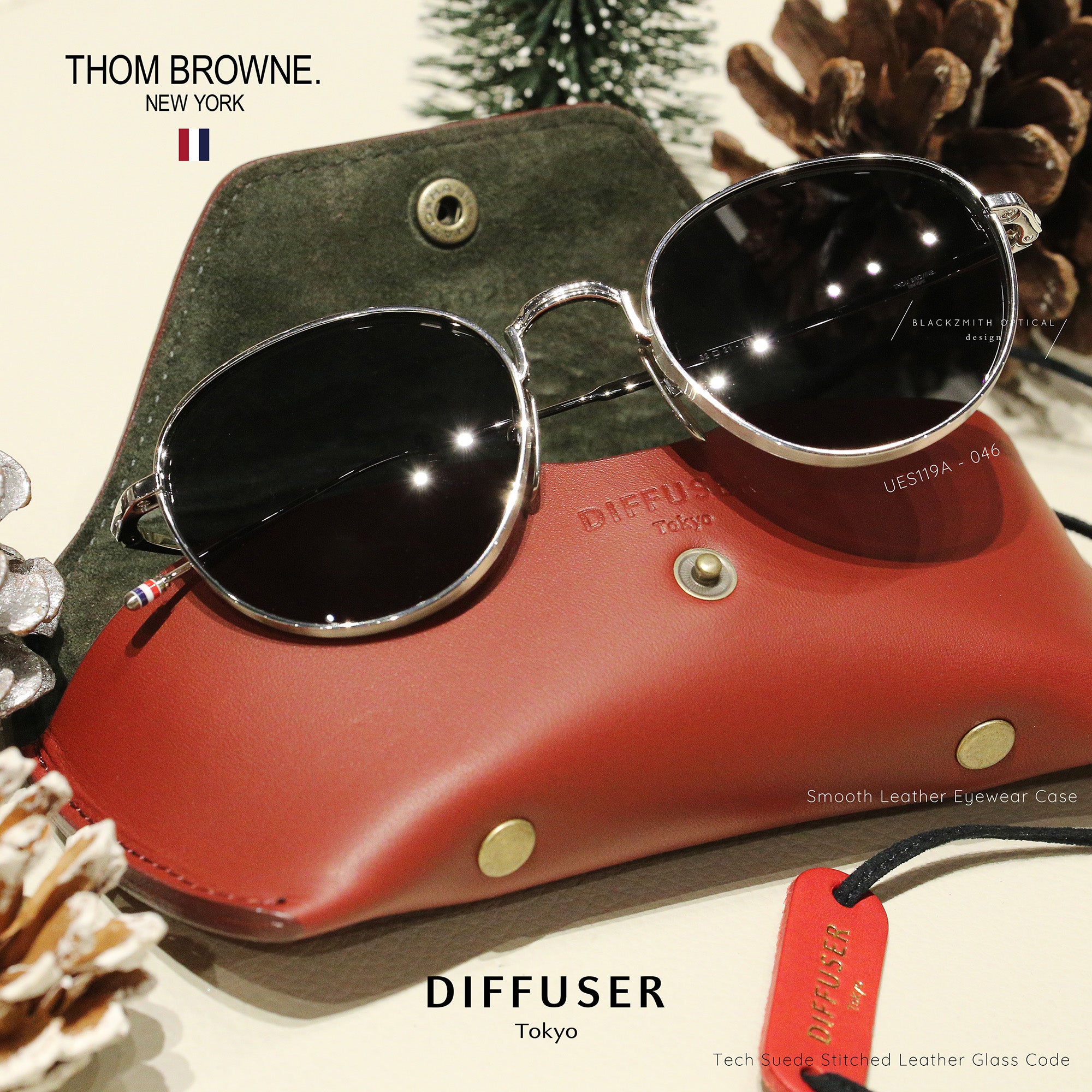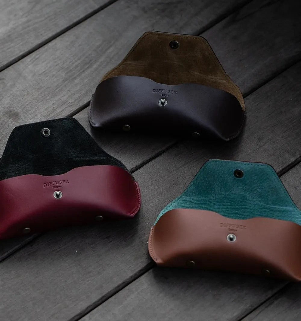 Diffuser Tokyo - Smooth Leather Eyewear Case-S 時尚皮革絨毛眼鏡收納盒-Red & Dark Khaki【Blackzmith Exclusive Limited Edition】