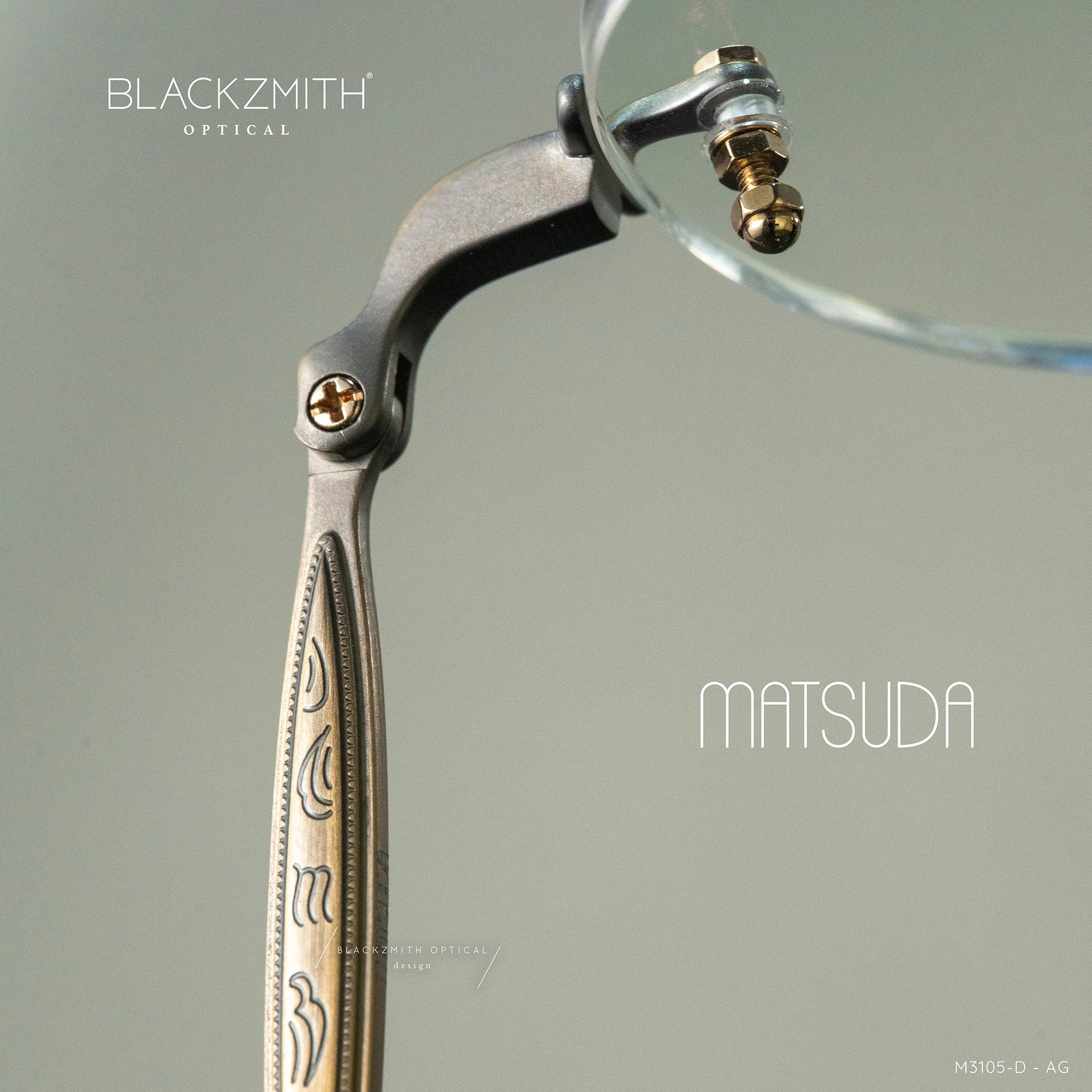 MATSUDA 擁有近半百年歷史,曾是日本天皇御用的手工眼鏡品牌,最標誌性的是鏡框的精緻壓花,經鐵匠們妙手雕花,精雕細琢,仿如讓眼鏡注入了靈魂,秉承日本傳統精益求精的造工態度,而且925純銀系列都均附有獨特的收藏盒。MATSUDA眼鏡創作不盲於時尚風格,融合日式傳統設計與西方哥德式風情,富有復古和前衛之間的韻味,以手工製作出獨一無二的眼鏡系列。每個系列的眼鏡最少需時2至3周的製作時間,鐵匠不依靠科技,經年累月、俐落而的精湛匠藝,悉心拿捏著力道與動作,經過多達250個手工程序完成,而且對每個細節非常執著,無法挑剔,除了精緻華麗且透徹縝密的雕刻壓花外,還有深藏不露的接縫處理,選用「 純鈦 、 18K金 、 22.5K金 、 925純銀 」等珍貴材料製作,卓越品質值鑑賞。品牌堅持傳統人手製作,卻展現品質與時尚感俱備的設計,深受名人巨星的喜愛如Brad Pitt與Amanda Seyfried等,就連電影《Terminator 2 魔鬼終結者》與《Iron Man 3 鋼鐵人》劇中的角色也佩戴品牌的眼鏡系列。