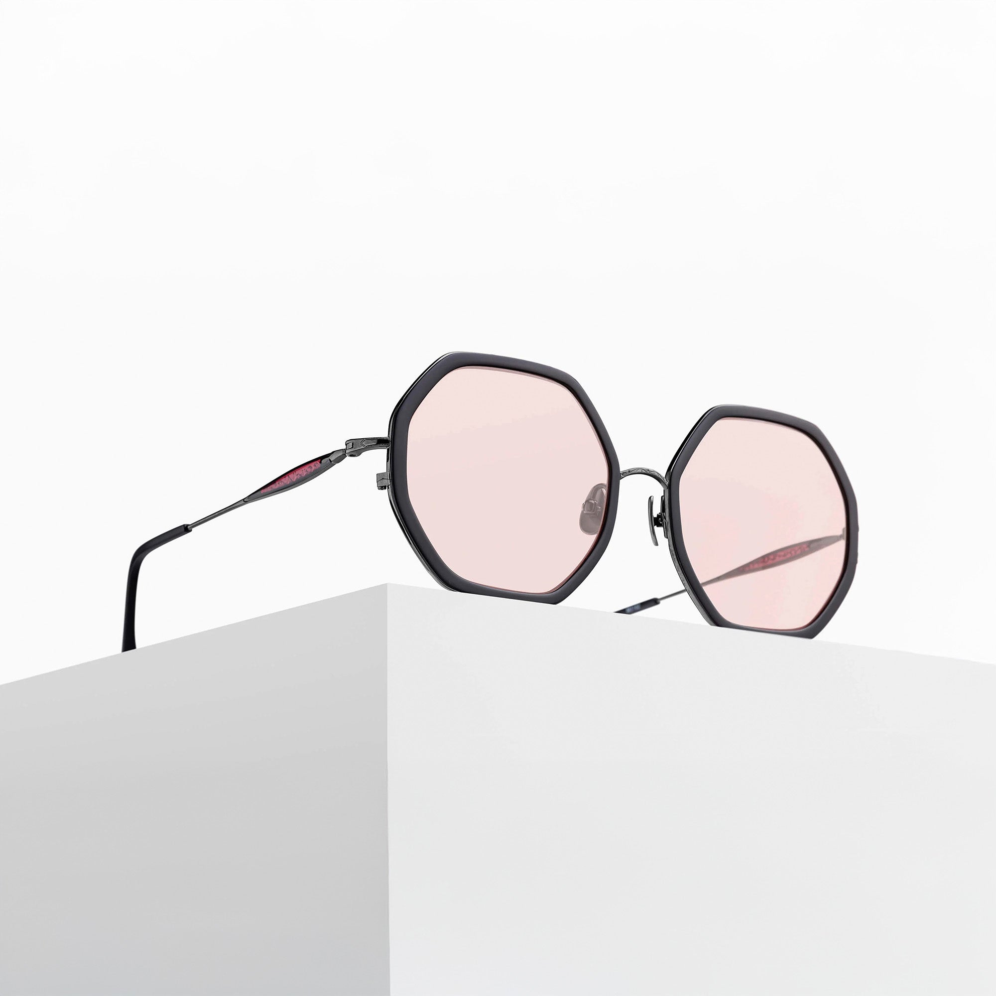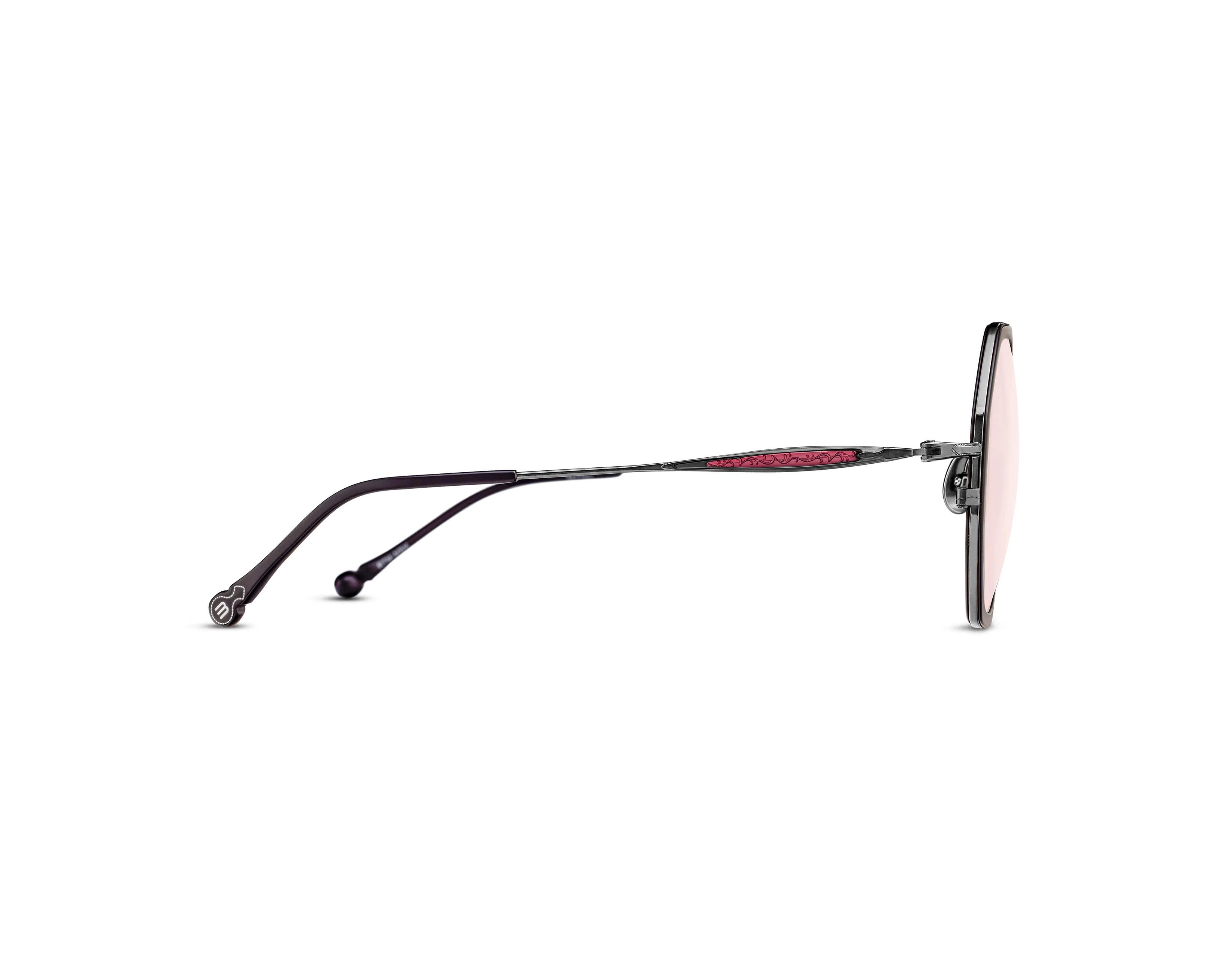 日本天皇御用手造眼鏡品牌 MATSUDA - M3162 八角形太陽眼鏡以 Oversize 大眼型設計,板材鏡框前後夾心鈦金屬支架,中樑刻上細緻雕花,鈦金屬鏡臂相嵌雕刻上蔓藤花紋的透色板材,散發出濃郁的古雅格調,板材鏡臂末端更嵌入品牌M字樣的復古圖案作結,處處盡顯心思細節,從獨特細節中毫無保留地顯現日本手造眼鏡的古典精緻,襯上潮流大熱的透色鏡片,帶出時尚個性!