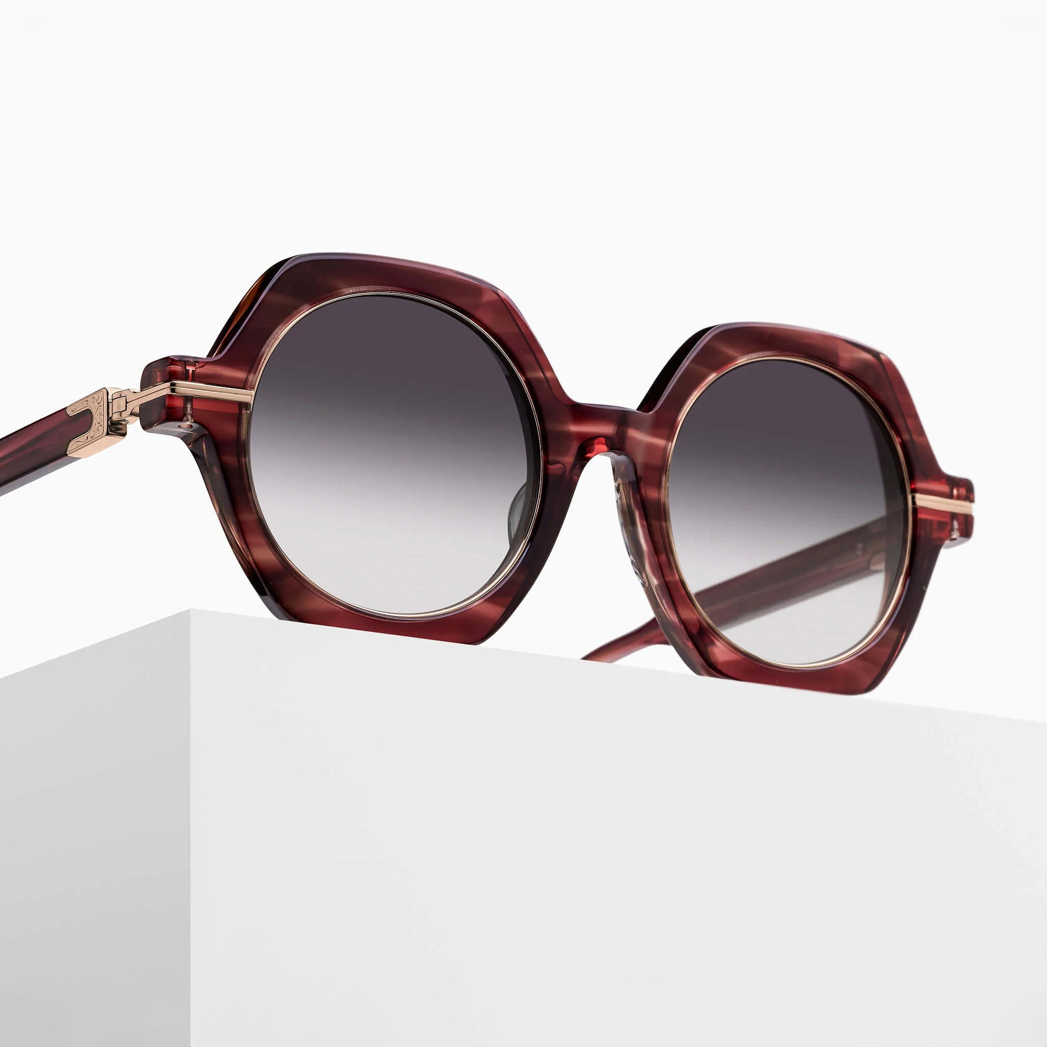 顏色:波爾多紅色條紋/玫瑰金(灰色漸變鏡片) |