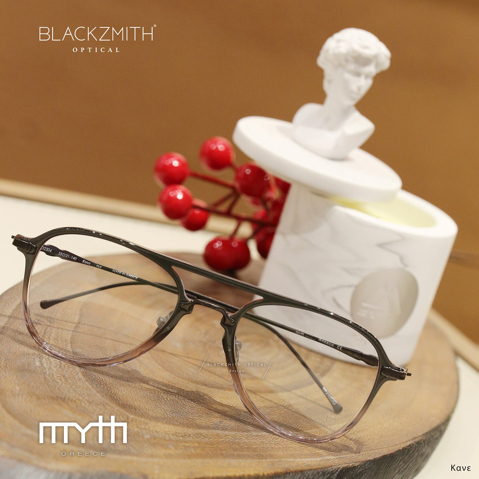大熱小眾希臘眼鏡品牌 MYTH Greece 深受一眾明星與時尚達人喜愛,是時尚圈搶手的必備配搭單品!MYTH Greece 創作靈感源自希臘神話,將希臘最寶貴的文化與當代的顛覆設計融為一體,結合藝術美學與大膽的前衛特色。MYTH - Κανε 以板材切割打造飛行員鏡框,鈦金屬中樑與鏡臂刻上幾何雕花,細節處處盡顯職人心思,摩登時尚,為配襯造型增添亮點!